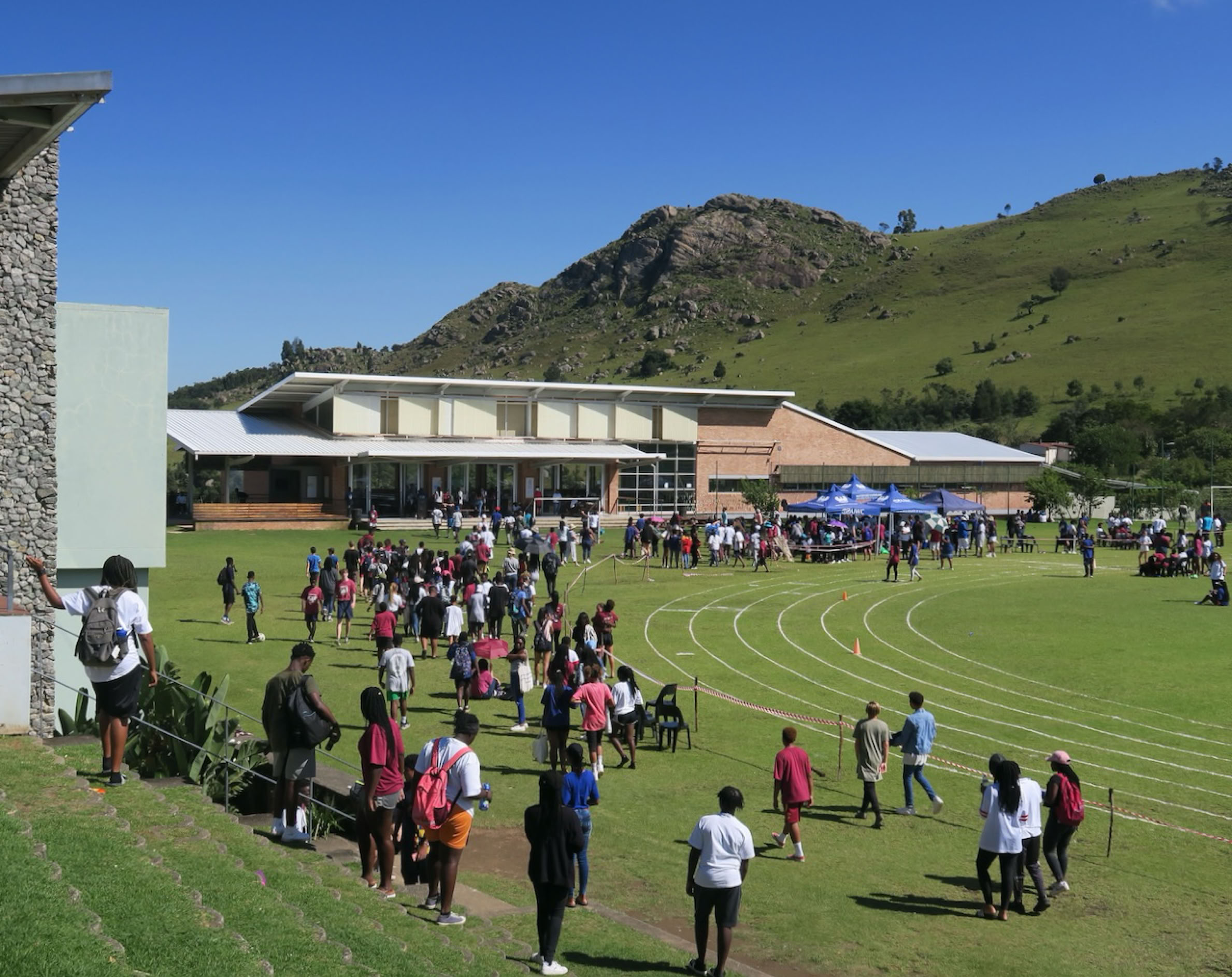 The dining hall is a pavilion with long veranda opening to the main playing field. Sliding shutters and internal blinds allow the hall to be heated by the winter sun. The lower floor houses classrooms and laboratory, facing back towards the main academic block.