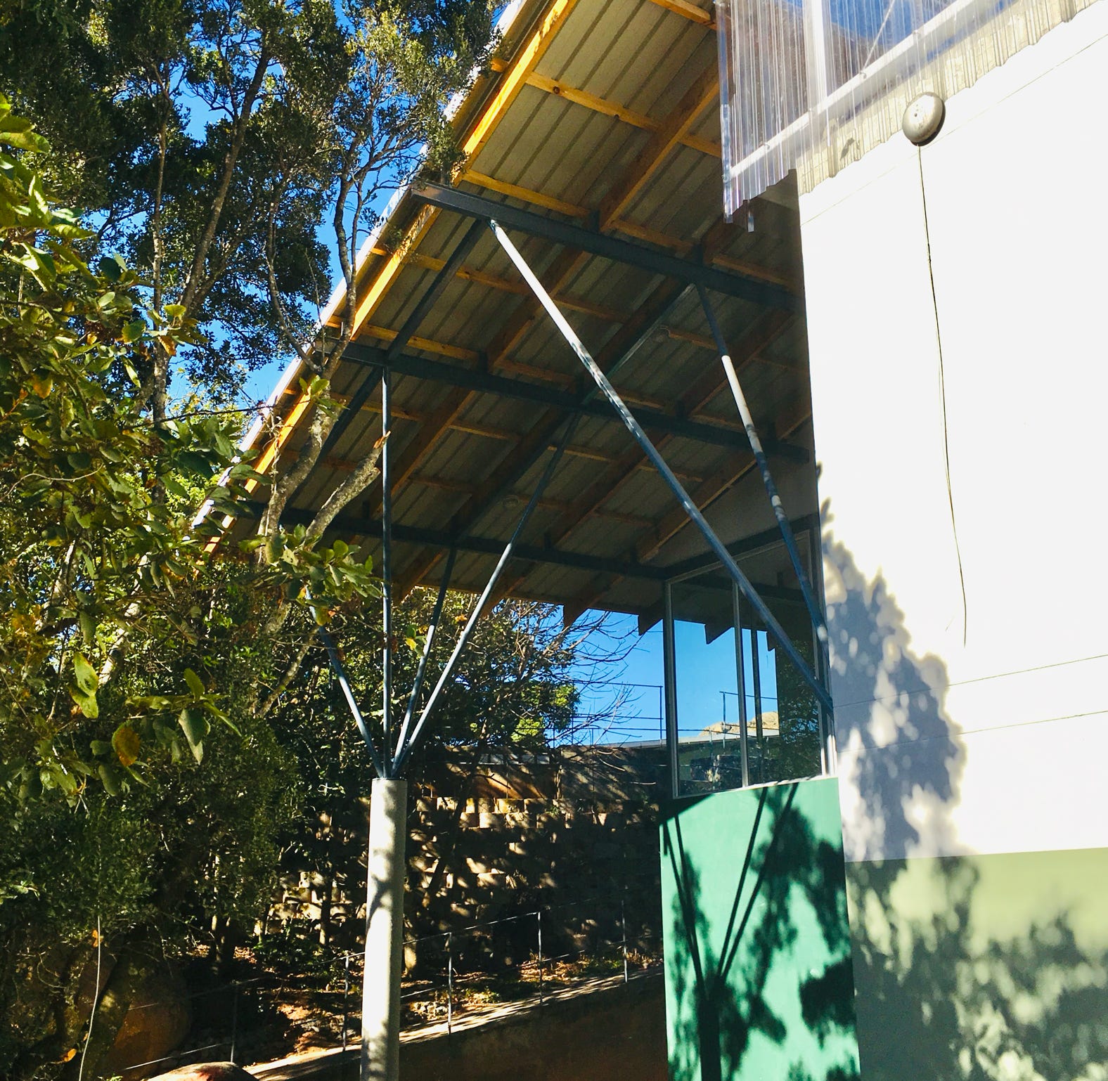 The existing tubular steel triangular trusses are retained with additional framing to carry the new elevated roof. Clear poly carbonate clerestory glazing surrounds the perimeter of the hall. The hall is one of the major campus facilities