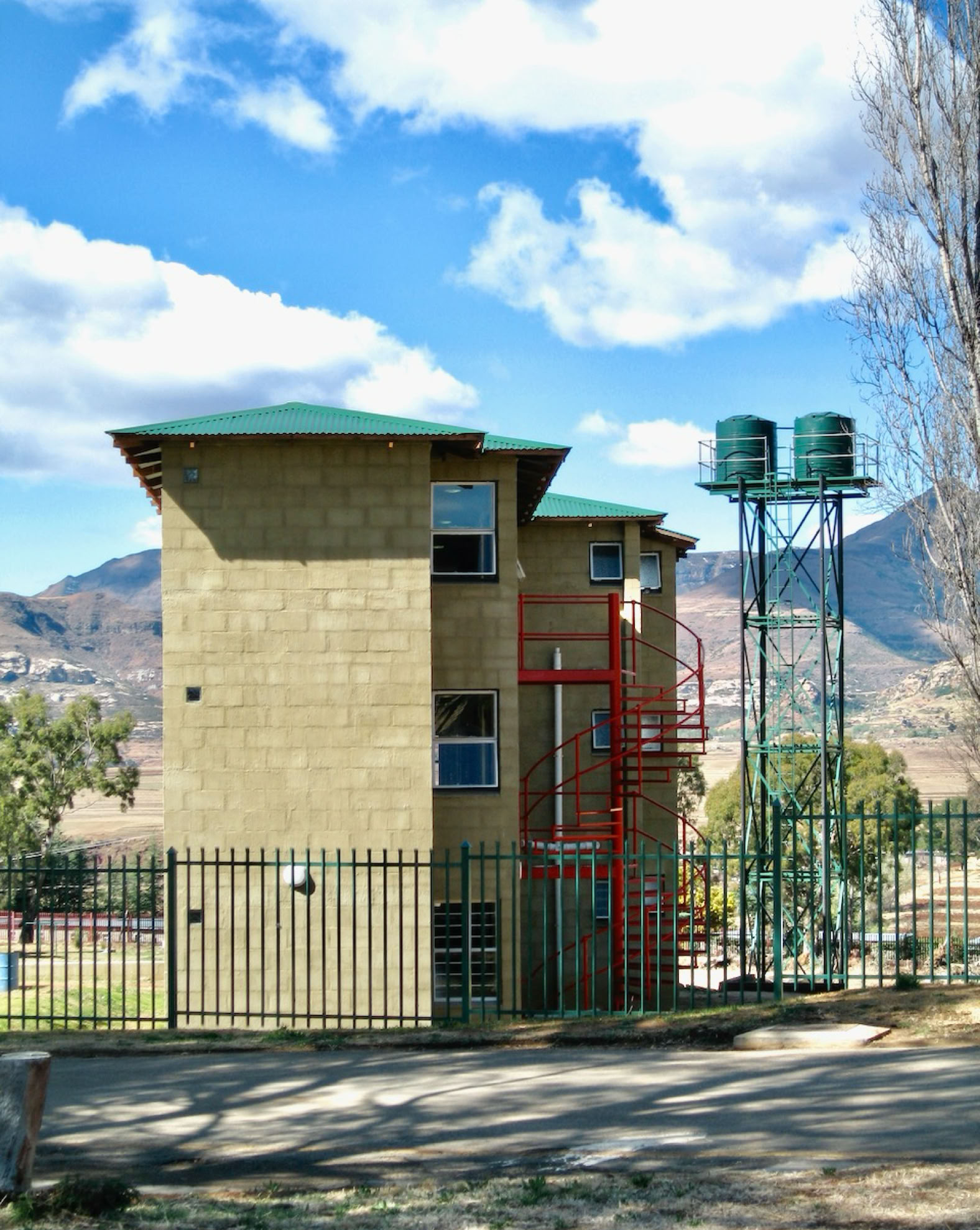 Set against a dramatic mountain backdrop, the first phase of the student residence complex houses 256 students and will grow to over 1000 students as enrolment increases. The series of linked buildings is adjacent to the main campus in Roma. Rendered blockwork is coloured to blend with the surrounding sandstone hills. An axial walkway leads towards the church which is a striking feature of the NUL campus. In terms of green building measures, all student rooms face the northern sun, to maximise passive heating, grey water is cleaned and reused for flushing and concrete masonry was manufactured on site, during construction.